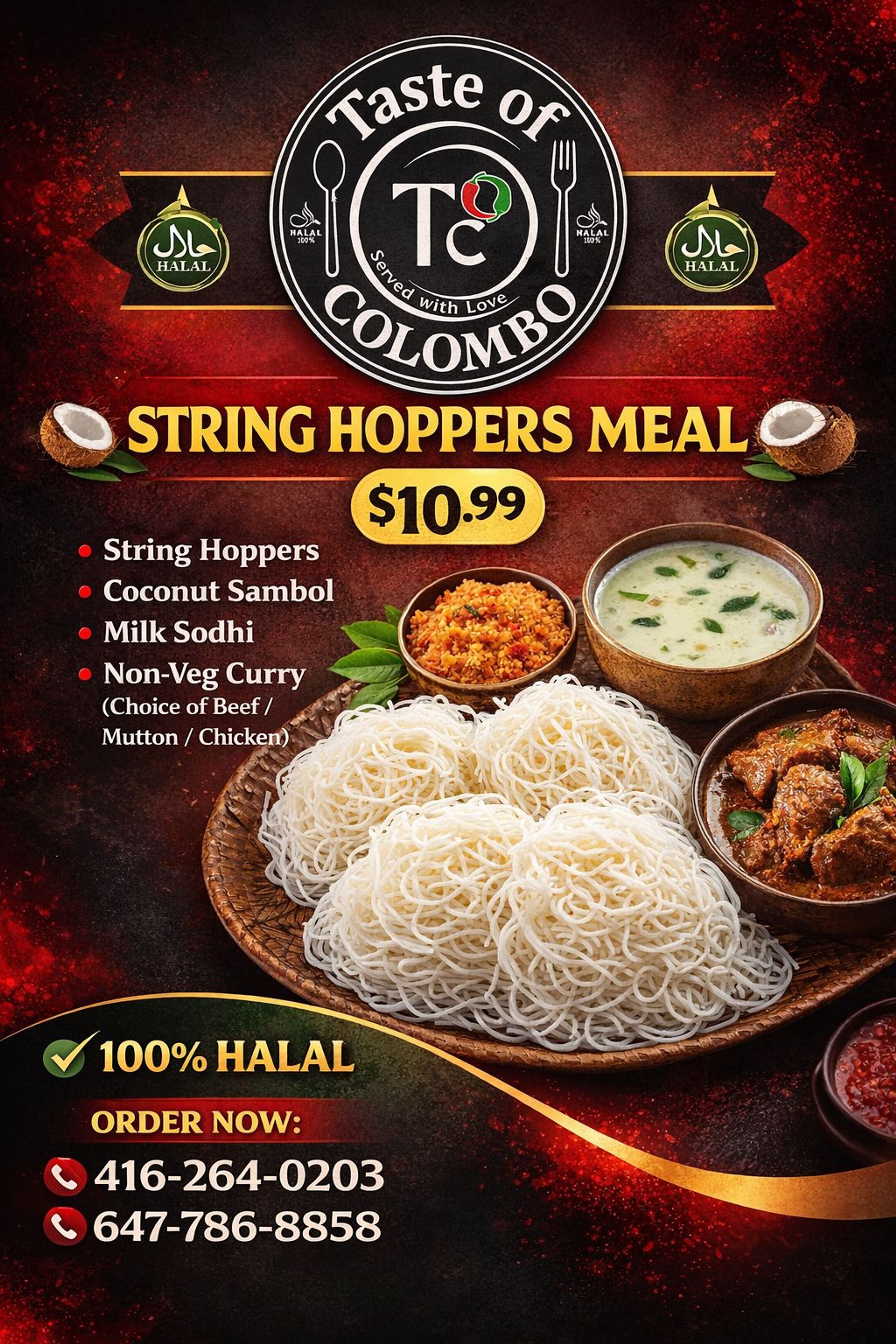 $13.99Savour the exotic flavours of Colombo-style Beef Curry, with tender beef cooked in a fragrant blend of spices and coconut milk, for a taste of Sri Lankan culinary delight