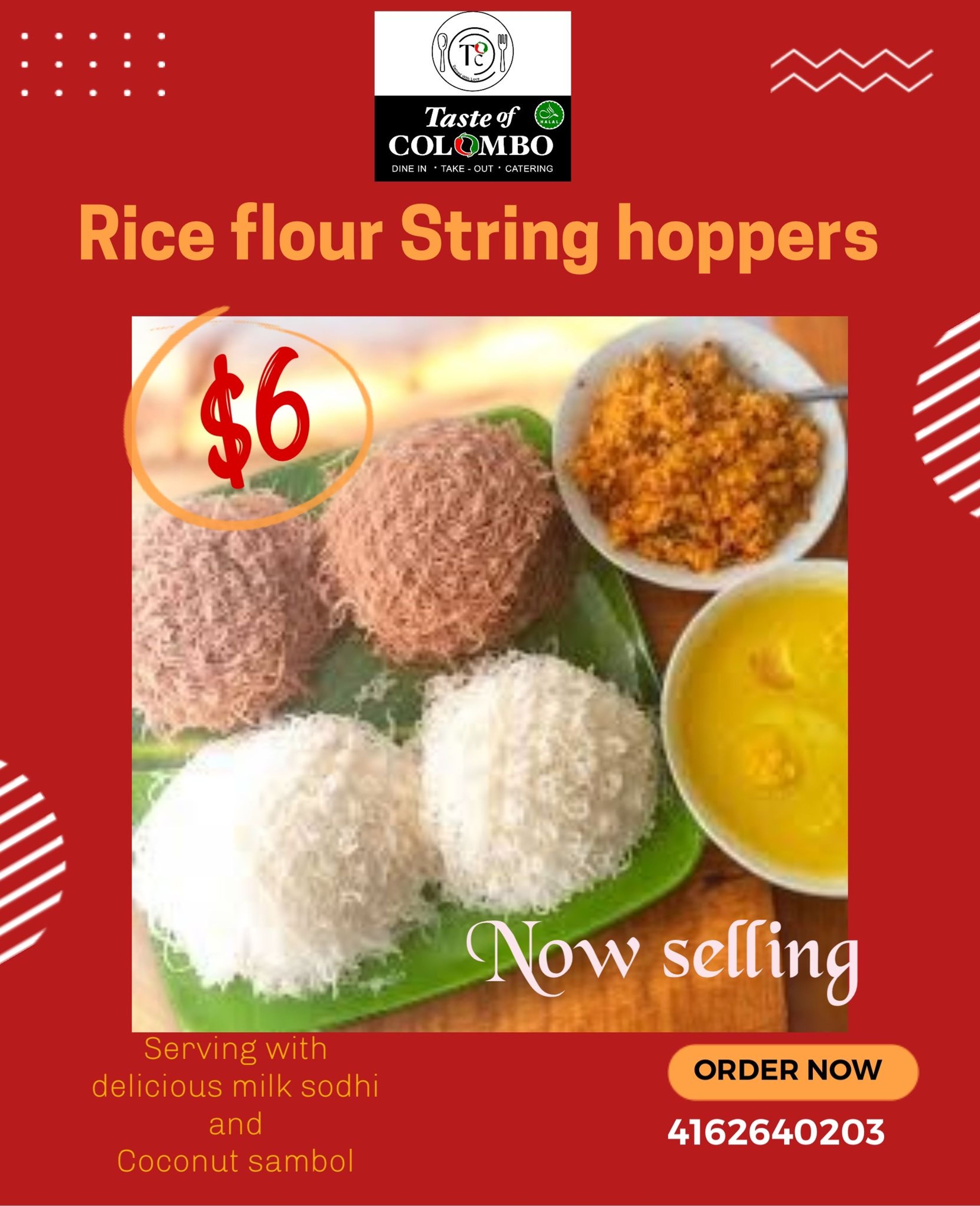 $4.50Try Manni Pittu, a savory Sri Lankan dish made with roasted rice flour and coconut milk, perfect for pairing with your favorite curries. With katta sambol and coconut